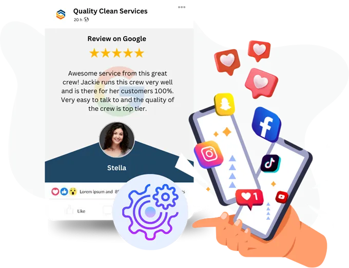 Other than using the Review Engine cards to get reviews, the system is literally hands free. We’ll ensure that we get all the proper business info and connections to set up your custom AI-powered system.